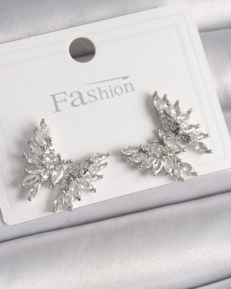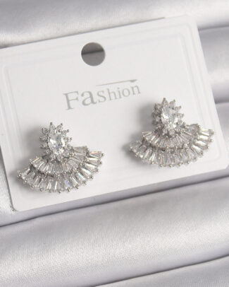 Pirinç Gümüş Renk Zirkon Taşlı Yelpaze Model Kadın Küpe