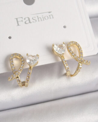 Pirinç Gold Renk Düğüm Model Zirkon Taşlı Kalp Detay Kadın Küpe