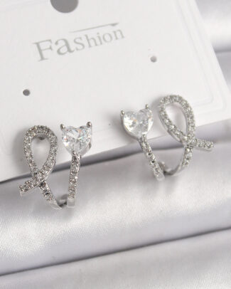 Pirinç Gümüş Renk Düğüm Model Zirkon Taşlı Kalp Detay Kadın Küpe