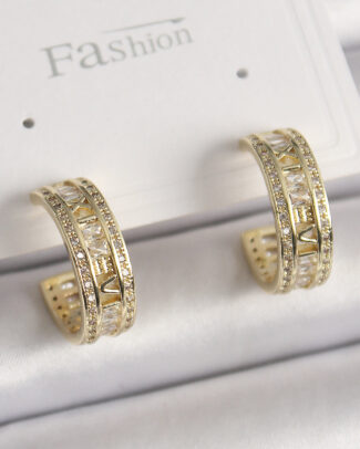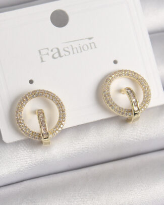 Pirinç Gold Renk Zirkon Taşlı Halka Model Kadın Küpe