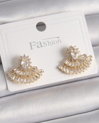 Pirinç Gold Renk Zirkon Taşlı Yelpaze Model Kadın Küpe