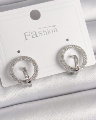 Pirinç Gümüş Renk Zirkon Taşlı Halka Model Kadın Küpe