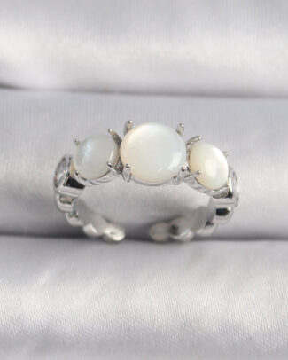 Pirinç Gümüş Renk Zirkon Taş Detaylı Beyaz Sedefli VIP Seri Kadın Yüzük