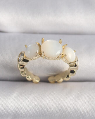 Pirinç Gold Renk Zirkon Taş Detaylı Beyaz Sedefli VIP Seri Kadın Yüzük