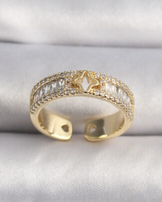 Pirinç Gold Renk Zirkon Taşlı Yıldız İşleme VIP Seri Kadın Yüzük