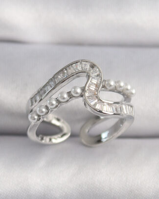 Pirinç Gümüş Renk Zirkon Taşlı İnci Detay VIP Seri Kadın Yüzük