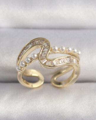 Pirinç Gold Renk Zirkon Taşlı İnci Detay VIP Seri Kadın Yüzük