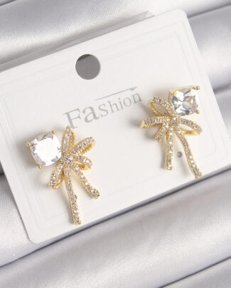 Pirinç Gold Renk Zirkon Taşlı Fiyonk Model Kadın Küpe