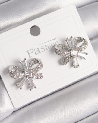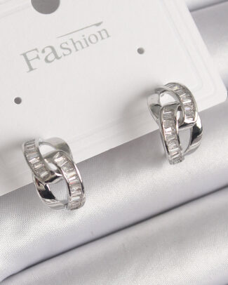 Pirinç Gümüş Renk Zirkon Taşlı Fiyonk Model Kadın Küpe