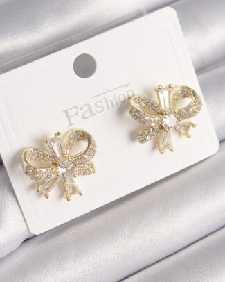 Pirinç Gold Renk Zirkon Taşlı Kurdele Model Kadın Küpe