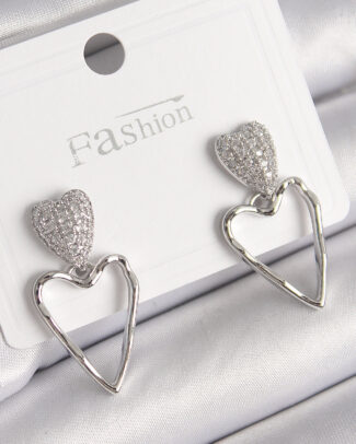 Pirinç Gümüş Renk Zirkon Taşlı Kalp Model Kadın Küpe