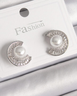Pirinç Gümüş Renk Zirkon Taşlı Salyangoz Model İnci Detay Kadın Küpe