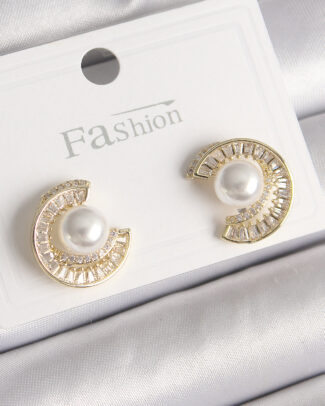 Pirinç Gold Renk Zirkon Taşlı Salyangoz Model İnci Detay Kadın Küpe