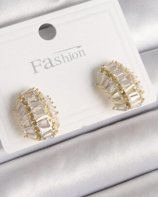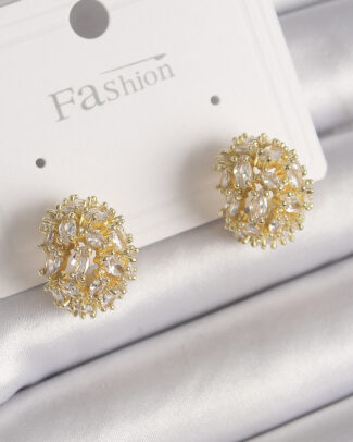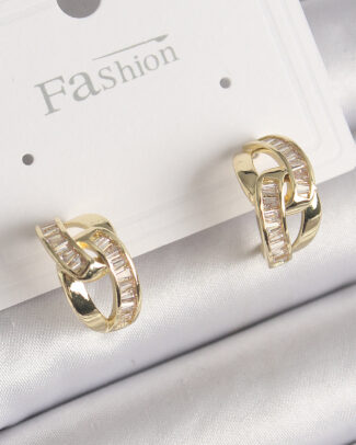 Pirinç Gold Renk Zirkon Taşlı Kadın Küpe