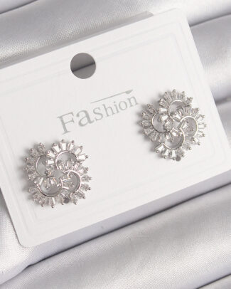 Pirinç Gümüş Renk Zirkon Taşlı Yonca Model Kadın Küpe