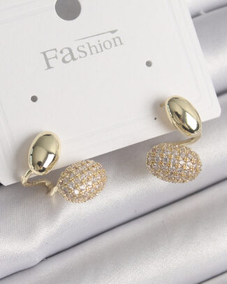 Pirinç Gold Renk Zirkon Taşlı Bombeli Model Kadın Küpe