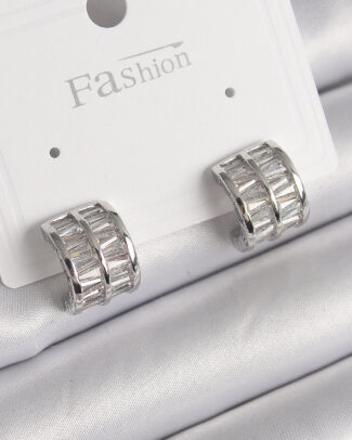 Pirinç Gümüş Renk Çift Sıra Zirkon Taşlı Kadın Küpe