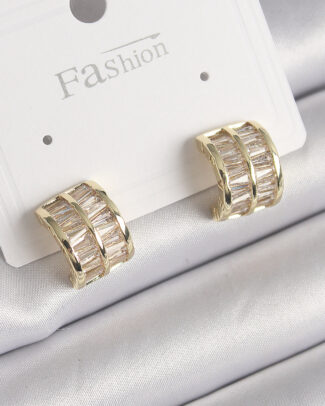 Pirinç Gold Renk Çift Sıra Zirkon Taşlı Kadın Küpe
