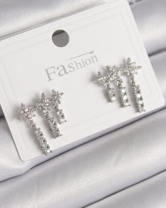 Pirinç Gümüş Renk Zirkon Taşlı 3’Lü Sallantı Yıldız Model Kadın Küpe