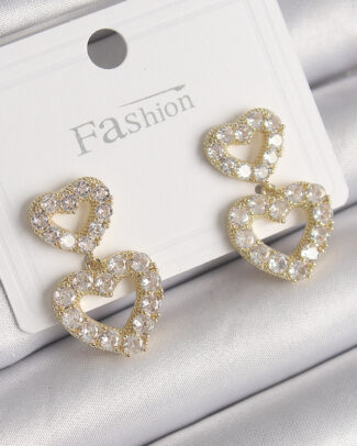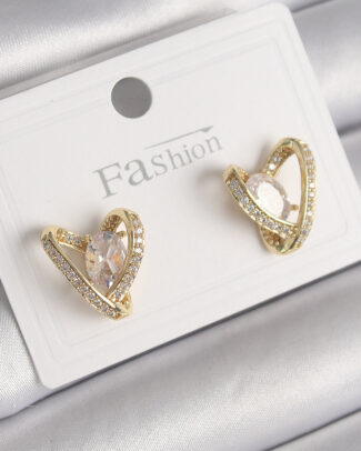 Pirinç Gold Renk Zirkon Taşlı Kalp Model Kadın Küpe