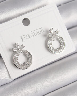 Pirinç Gümüş Renk Zirkon Taşlı Halka Model Çiçek Figür Kadın Küpe