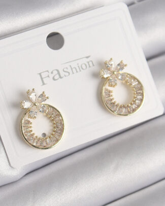 Pirinç Gold Renk Zirkon Taşlı Halka Model Çiçek Figür Kadın Küpe