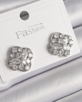 Pirinç Gümüş Renk Zirkon Taşlı Yonca Model Kadın Küpe