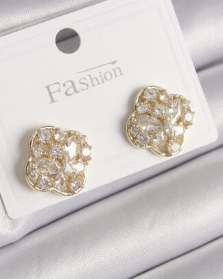 Pirinç Gold Renk Zirkon Taşlı Yonca Model Kadın Küpe