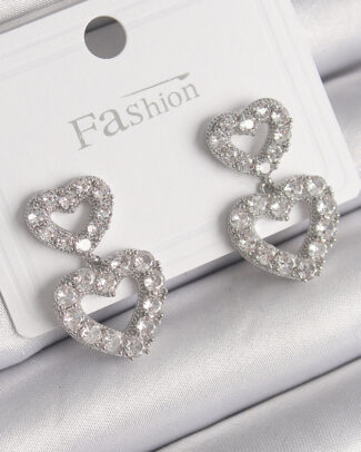 Pirinç Gümüş Renk Zirkon Taşlı Sallantı Kalp Model Kadın Küpe