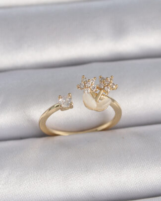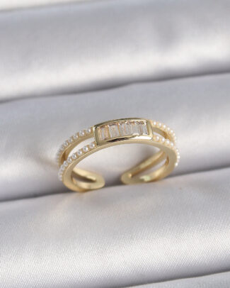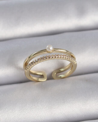 Pirinç Gold Renk Zirkon Taşlı İnci Detay Ayarlanabilir Model Kadın Yüzük