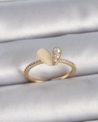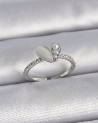 Pirinç Gümüş Renk Ayarlanabilir Zirkon Taşlı İncili Beyaz Mineli Kalp Model Kadın Yüzük