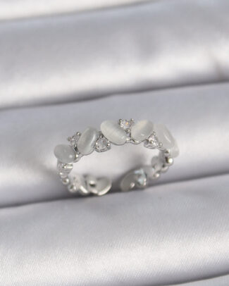 Pirinç Gümüş Renk Ayarlanabilir Zirkon Taşlı Beyaz Mineli Model Kadın Yüzük