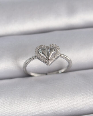 Pirinç Gümüş Renk Ayarlanabilir Zirkon Taşlı Beyaz Mineli Kalp Model Kadın Yüzük
