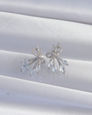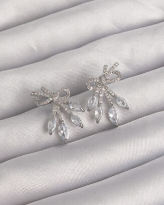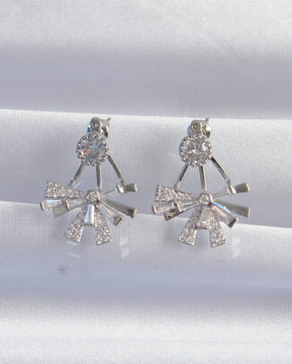 Pirinç Gümüş Renk Zirkon Taşlı Fiyonk Küpe