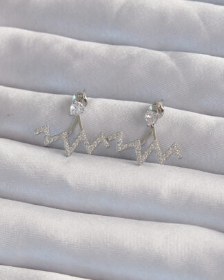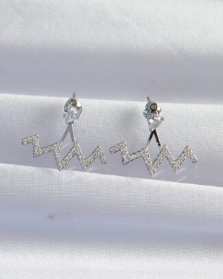 Pirinç Gümüş Renk Zirkon Taşlı Zikzak Küpe
