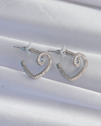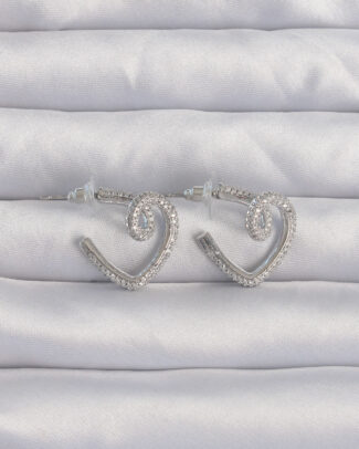 Pirinç Gümüş Renk Zirkon Taşlı Kıvrımlı Yarım Kalp Küpe