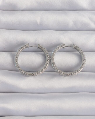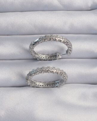 Pirinç Gümüş Renk Zirkon Taşlı Motifli Halka Küpe