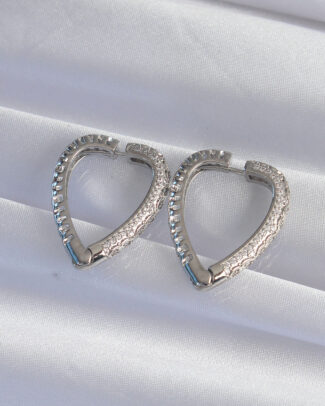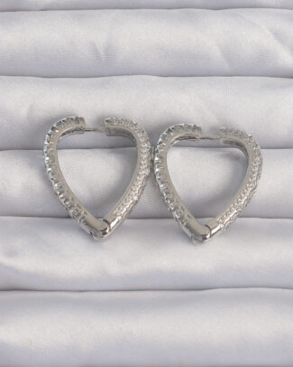 Pirinç Gümüş Renk Zirkon Taşlı Motifli Kalp Küpe