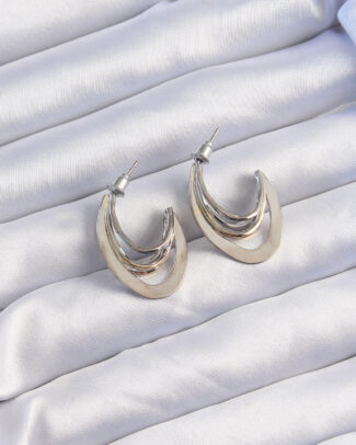 Pirinç Gümüş Renk Oval İşlemeli Küpe