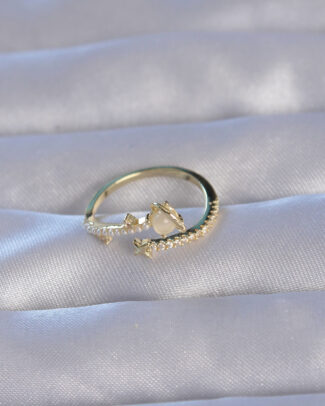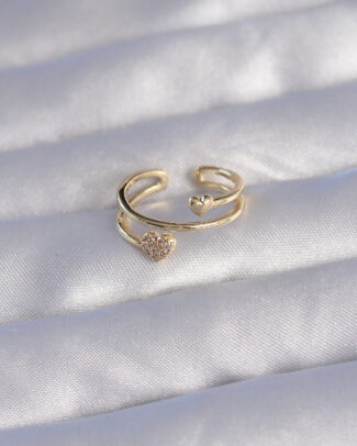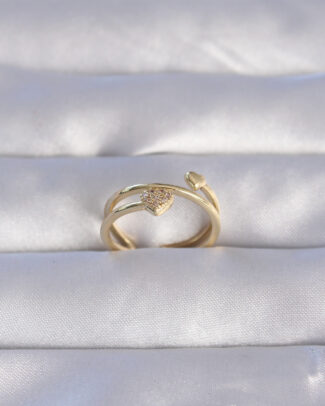 Pirinç Gold Renk Zirkon Taşlı Kalpli Model Ayarlanabilir Yüzük