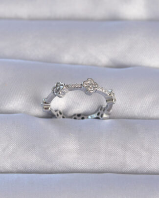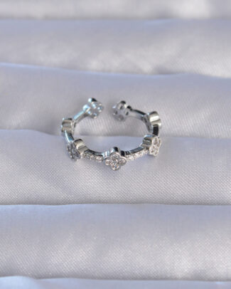 Pirinç Gümüş Renk Zirkon Taşlı Yonca Model Ayarlanabilir Yüzük