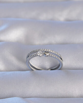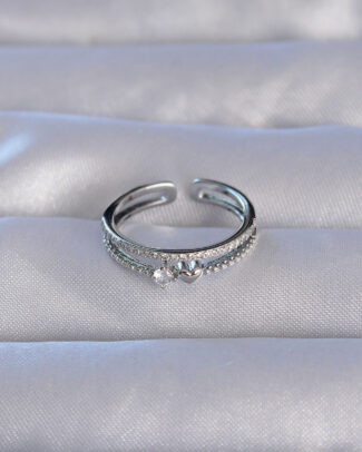 Pirinç Gümüş Renk Zirkon Taşlı Kalpli Su Yolu Model Ayarlanabilir Yüzük