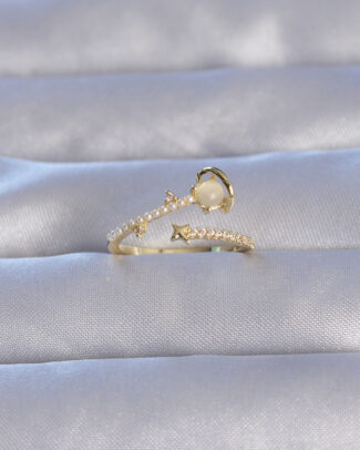 Pirinç Gold Renk Zirkon Taşlı İncili Satürn Model Ayarlanabilir Yüzük