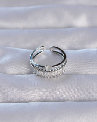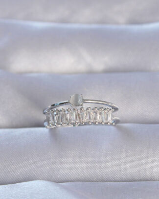 Pirinç Gümüş Renk Zirkon Taşlı Baget Su Yolu Model Ayarlanabilir Yüzük