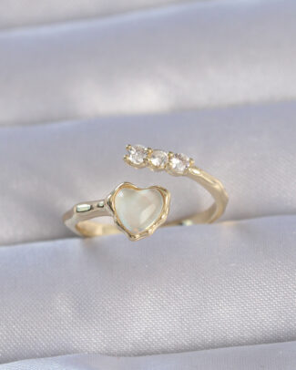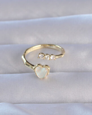 Pirinç Gold Renk Zirkon Taşlı Sedefli Kalp Model Ayarlanabilir Yüzük