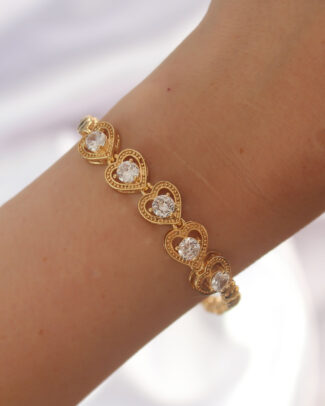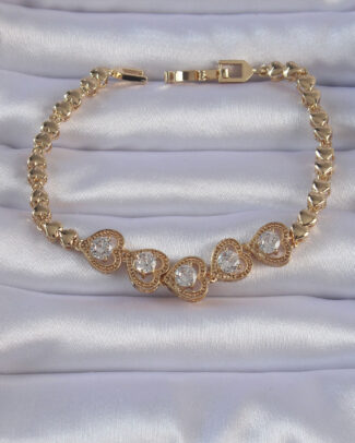 Pirinç Gold Renk İçi Zirkon Taşlı Kalp Figürlü Bileklik