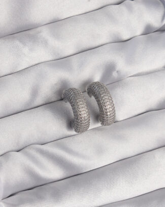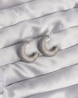 Pirinç Gümüş Renk Zirkon Taşlı Yarım Halka Küpe