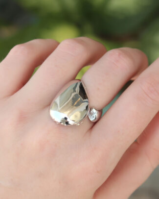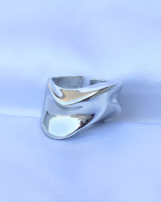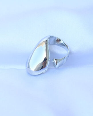 Pirinç Gümüş Renk Ayarlanabilir İri Bombeli Yüzük