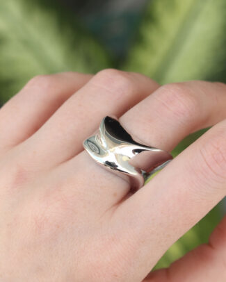 Pirinç Gümüş Renk Ayarlanabilir Tırtıklı Bombe Yüzük