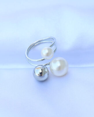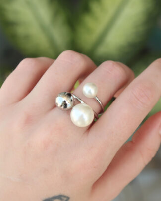 Pirinç Gümüş Renk Ayarlanabilir İnci Taşlı Yüzük
